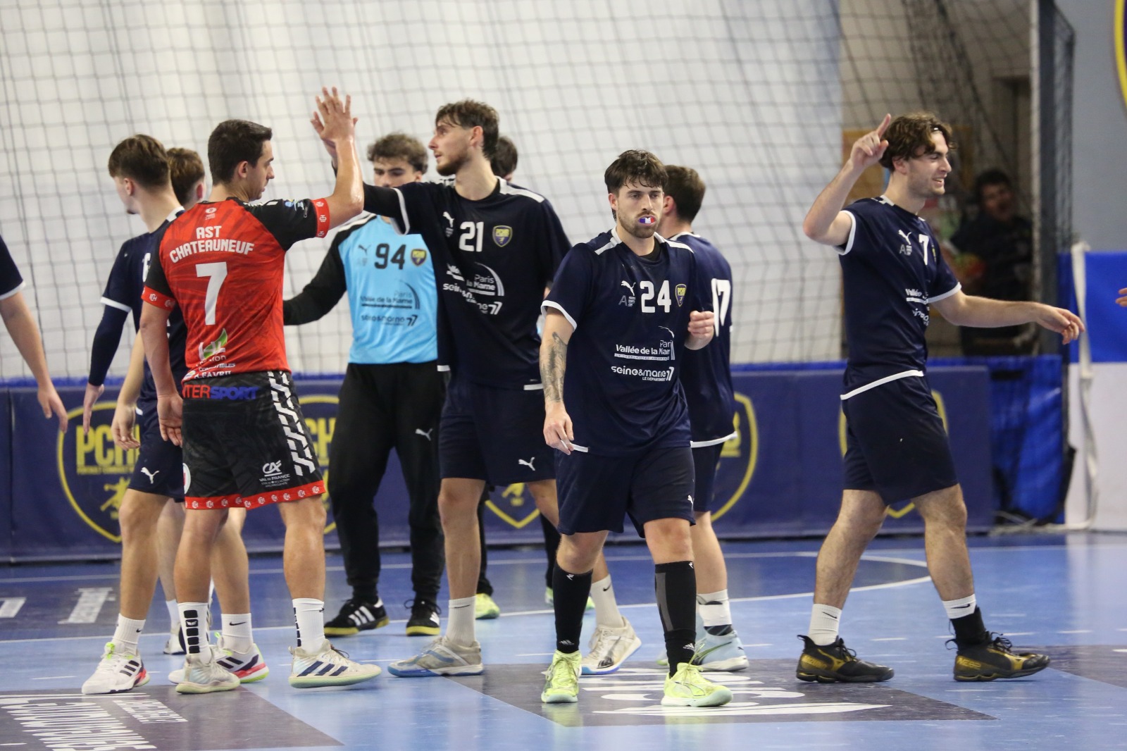 À l'autre bout du terrain, les Bleus s'en remettaient à l'efficacité de Corentin Poiret qui assurait l’essentiel depuis son aile droite (8 buts) pour faire basculer le score en leur faveur à la pause (12-9).